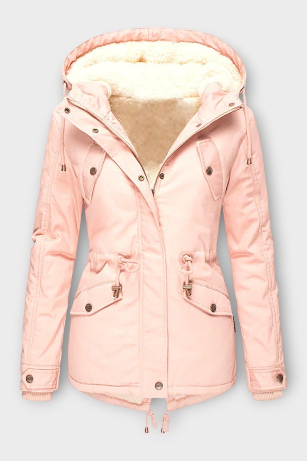 • Vandafvisende ydre: Beskytter mod vind og regn samtidig med at silhuetten forbliver feminin.
